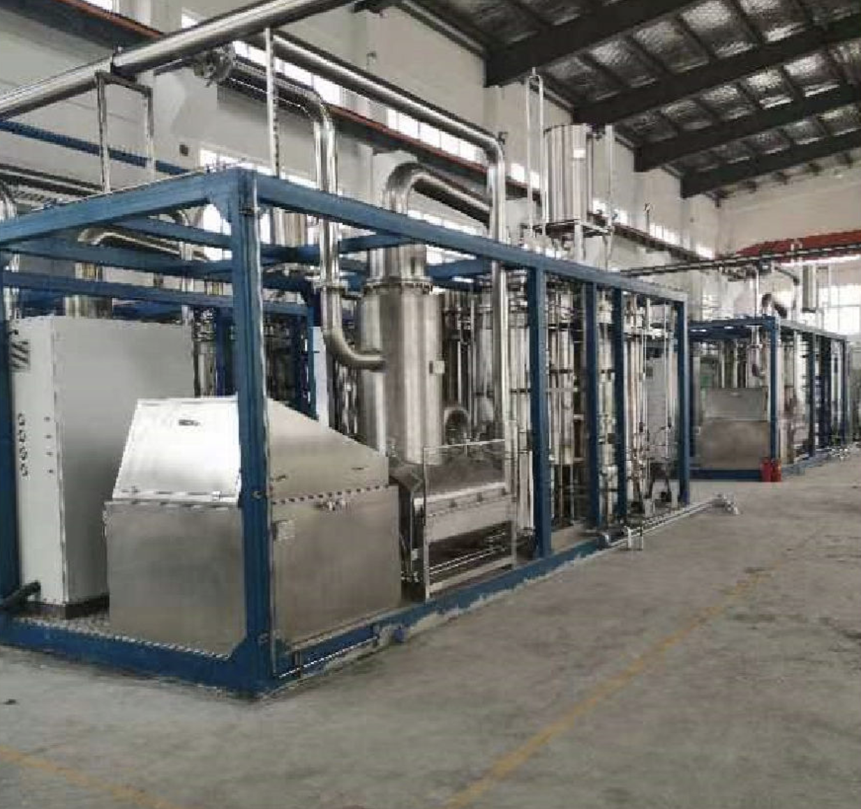 Process description:Pour the ammonium nitrate into the melting vessel, add a small amount of water and a catalyst, and use electric heating to melt the ammonium nitrate into a liquid state. The material is injected into the reactor by the injection pump, and the ammonium nitrate decomposes in the reactor, and the temperature, pressure and liquid level in the reactor are guaranteed to be stable through the control system. The decomposition products enter the condenser for cooling, and the condensable water is discharged. The cooled non-condensable gas N2O, etc. is washed by a multi-stage purification tower to remove impurity gases and then enters the buffer gas cabinet. After being pressurized by the compressor, impurities such as moisture are deeply removed through a multi-stage dry adsorber, condensed and liquefied in a high-pressure condenser, and then stored in a low-temperature storage tank.