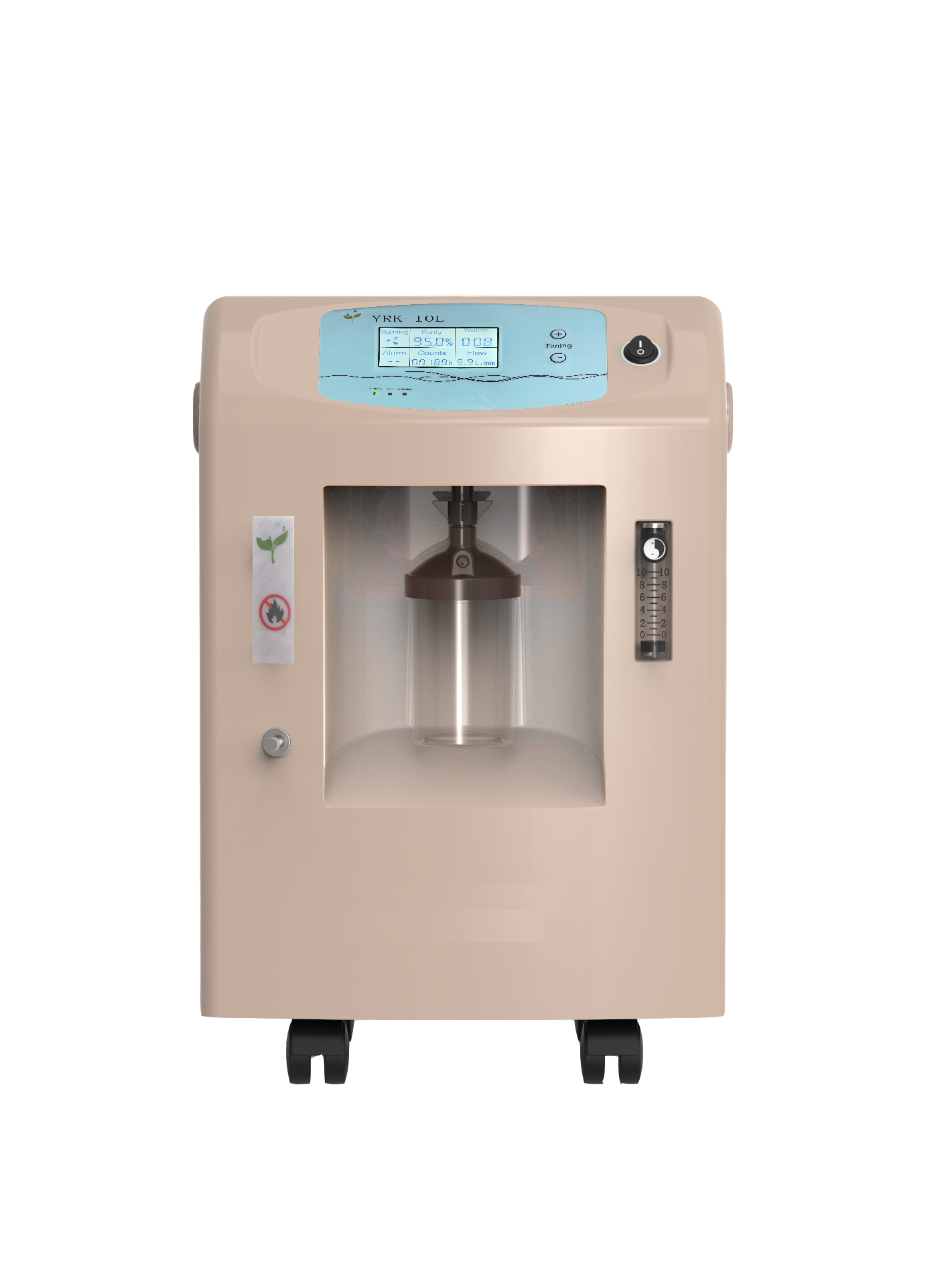 Molecular sieve oxygen generator YRK-10G adopts the adsorption performance of molecular sieve, and separates nitrogen and oxygen in the air by means of physical principle and large displacement oil-free compressor, and finally obtains high concentration of oxygen. This type of oxygen machine produces oxygen quickly, oxygen concentration is high, suitable for all kinds of people oxygen therapy and oxygen health care. Low power consumption, low price.